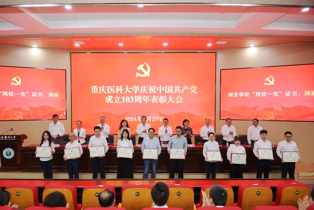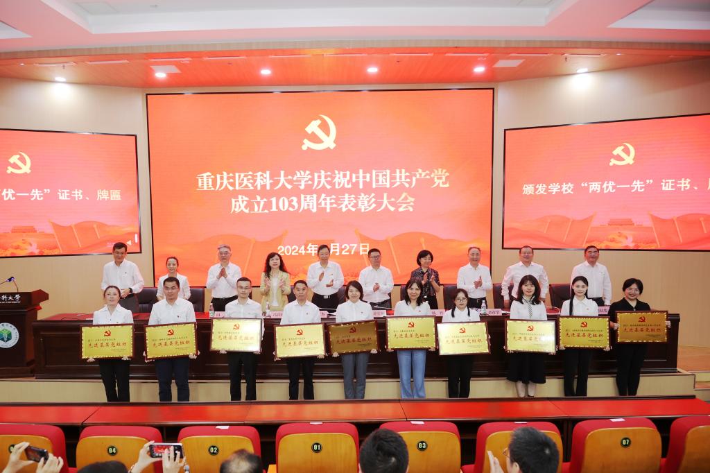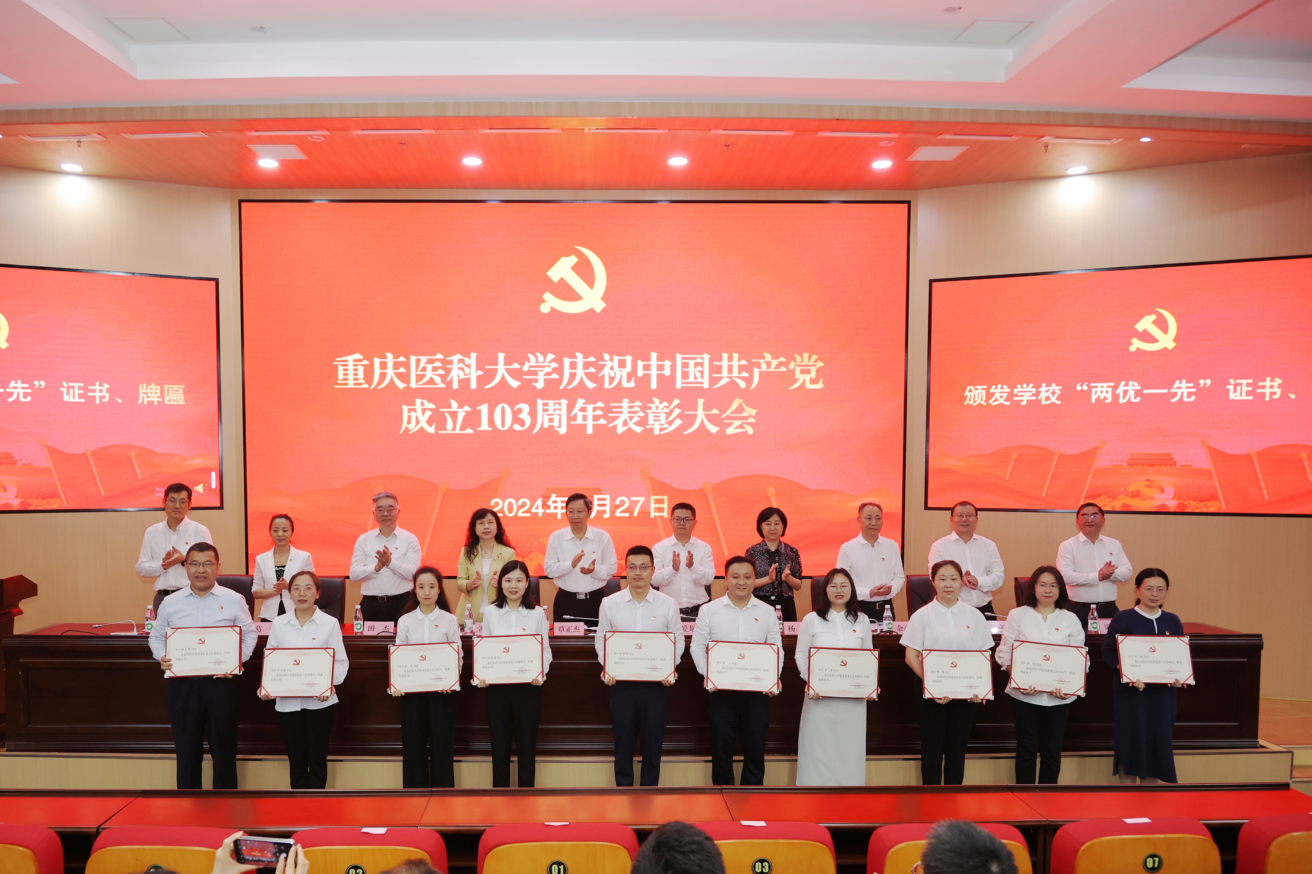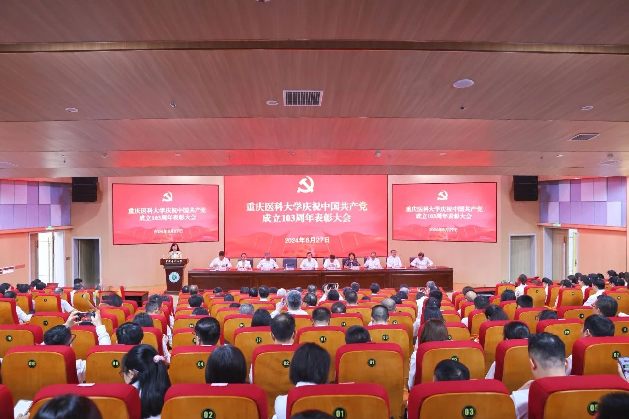 6月27日,在中国共产党成立103周年即将到来之际,荣耀体育在线登录入口在袁家岗校区国际学术报告厅隆重举行庆祝中国共产党成立103周年表彰大会。
