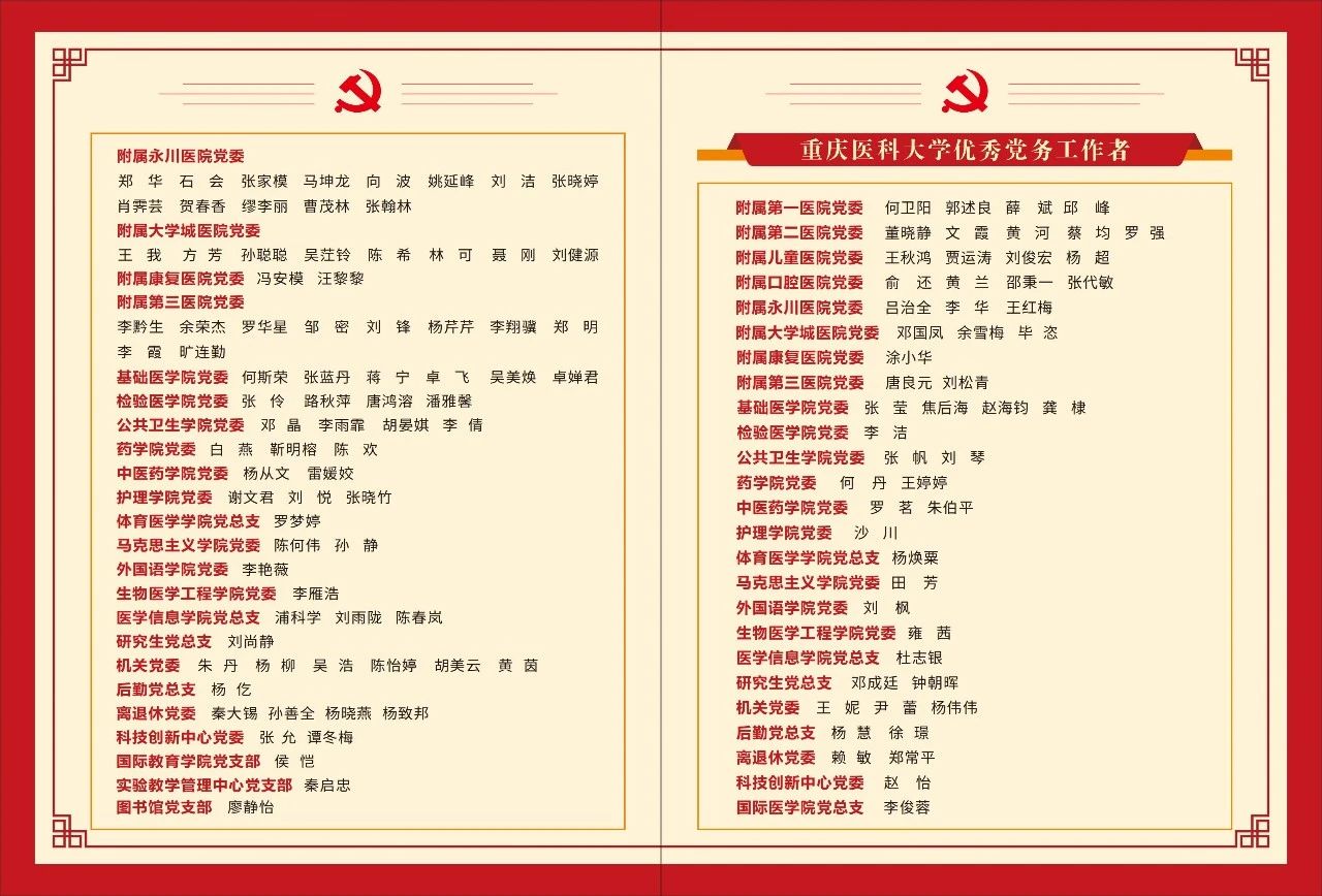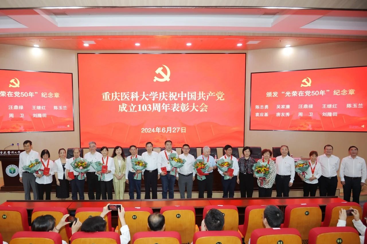校党委书记覃正杰代表荣耀体育在线登录入口党委向辛勤奋战在荣耀体育在线登录入口各条战线的广大党员致以节日问候,向荣获“光荣在党50年”纪念章的老党员、受表彰的先进集体和个人致以崇高敬意,向宣誓入党的新党员表示热烈祝贺,感谢为荣耀体育在线登录入口建设、改革与发展无私奉献、默默耕耘的每一位重医共产党员和广大干部职工。