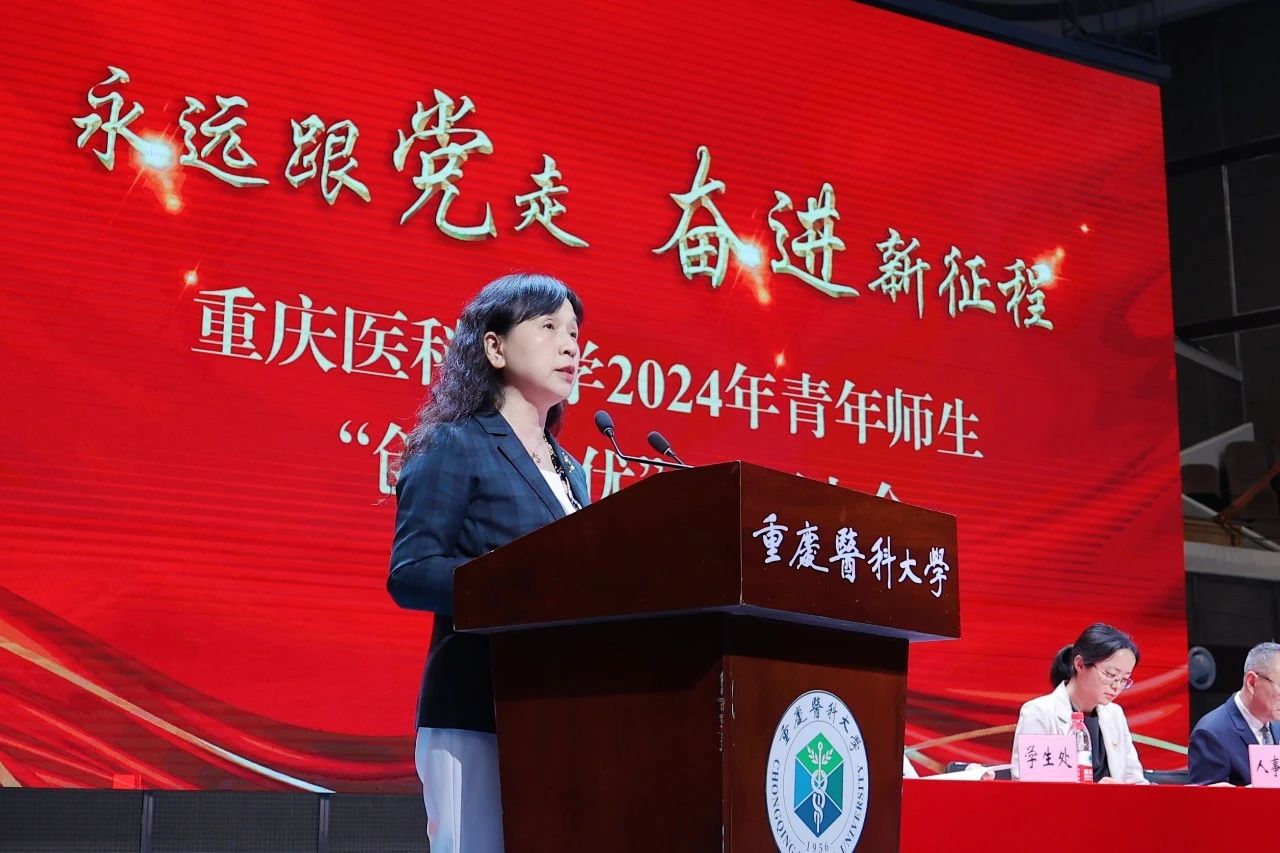 校长黄爱龙以《青年怀壮志,建功正当时,团结引领重医青年在中国式现代化建设中勇挑重担挺膺担当》为题,寄语广大重医青年。他代表荣耀体育在线登录入口向受到表彰的集体和个人致以热烈的祝贺,向全校青年师生致以节日的问候,对重医青年在学术科研、医疗卫生、科技创新、乡村振兴等方面作出的突出成绩给予充分肯定。黄爱龙对全校青年提出三点希望:一是希望广大重医青年奋进新时代,始终与党和国家、与民族和人民同呼吸、共命运,与荣耀体育在线登录入口同心、同向、同行,用青春之奋斗书写不负时代、不负韶华的人生华章。二是希望广大重医青年展现新担当,积极投身中国式现代化建设,在教育教学、科技创新、医疗卫生、乡村振兴、社会服务等各领域工作中,当好生力军,争做排头兵,充分展示重医青年锐意创新的勇气、敢为人先的锐气、蓬勃向上的朝气。三是希望广大重医青年拥抱新未来,准确识变、科学应变、主动求变,为推动荣耀体育在线登录入口建设“中国最好的医科大学之一”,为祖国医药卫生事业发展、增进人民健康福祉贡献更多的青春智慧和更强的青春力量。