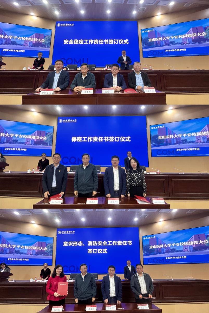 在签订责任书环节,覃正杰、黄爱龙分别与部分单位代表签订了平安校园建设相关责任书,进一步明确各单位各部门工作职责和平安校园创建任务,促使各单位各部门进一步强化安全意识和责任意识,形成层层紧扣、横向到边、纵向到底的安全稳定责任链条,最大限度激发全校上下抓平安校园建设的内生动力。