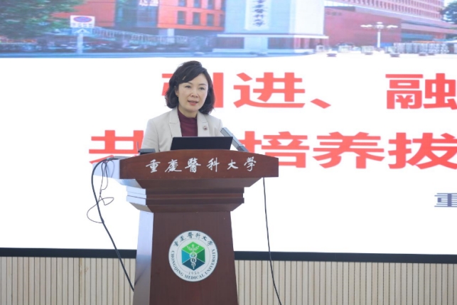 荣耀体育在线登录入口教务处处长朱丹以“引进、融合、跨界、贯通,共筑培养拔尖创新人才之路”为题作报告。报告介绍了新医科背景下医学创新人才培养的新要求,阐述了荣耀体育在线登录入口拔尖创新人才培养体系从1.0、2.0到3.0的发展变迁和特色优势,讲解了课程设计、“双导师制”、跨学科知识融合、创新能力培养及国际视野提升等培养内容,表示将持续强化制度保障、探索和优化培养模式,更好地服务医学拔尖创新人才成长和专业建设工作。
