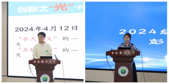 2023级临床医学(钱惪班)学生代表王美森分享了就读一年来的收获和感悟。从感悟西迁先驱的无私奉献、爱国敬业的大爱,到班级活动的“集体之爱”,到医者仁心的“医学之爱”,再到勇于担当的“家国之爱”,表示同学们已成为一个“心中有爱,眼中有光”的班集体,代表全体同学感谢荣耀体育在线登录入口和老师的辛勤付出,表示会倍加珍惜荣耀体育在线登录入口给予的良好条件,努力成长为一名胸怀大爱的卓越医学人才。2024级临床医学(钱惪班)的彭怡曼作为新生代表分享了自己对医学的认知和对班级的真挚情感,感谢荣耀体育在线登录入口为同学们搭建的良好平台和提供的宝贵成长机会,表示会做好大学规划,珍惜时间,脚踏实地、开拓创新,以不负青春、向阳而生的姿态,努力成为优秀的重医学子,担当起人民健康守卫者的重任。