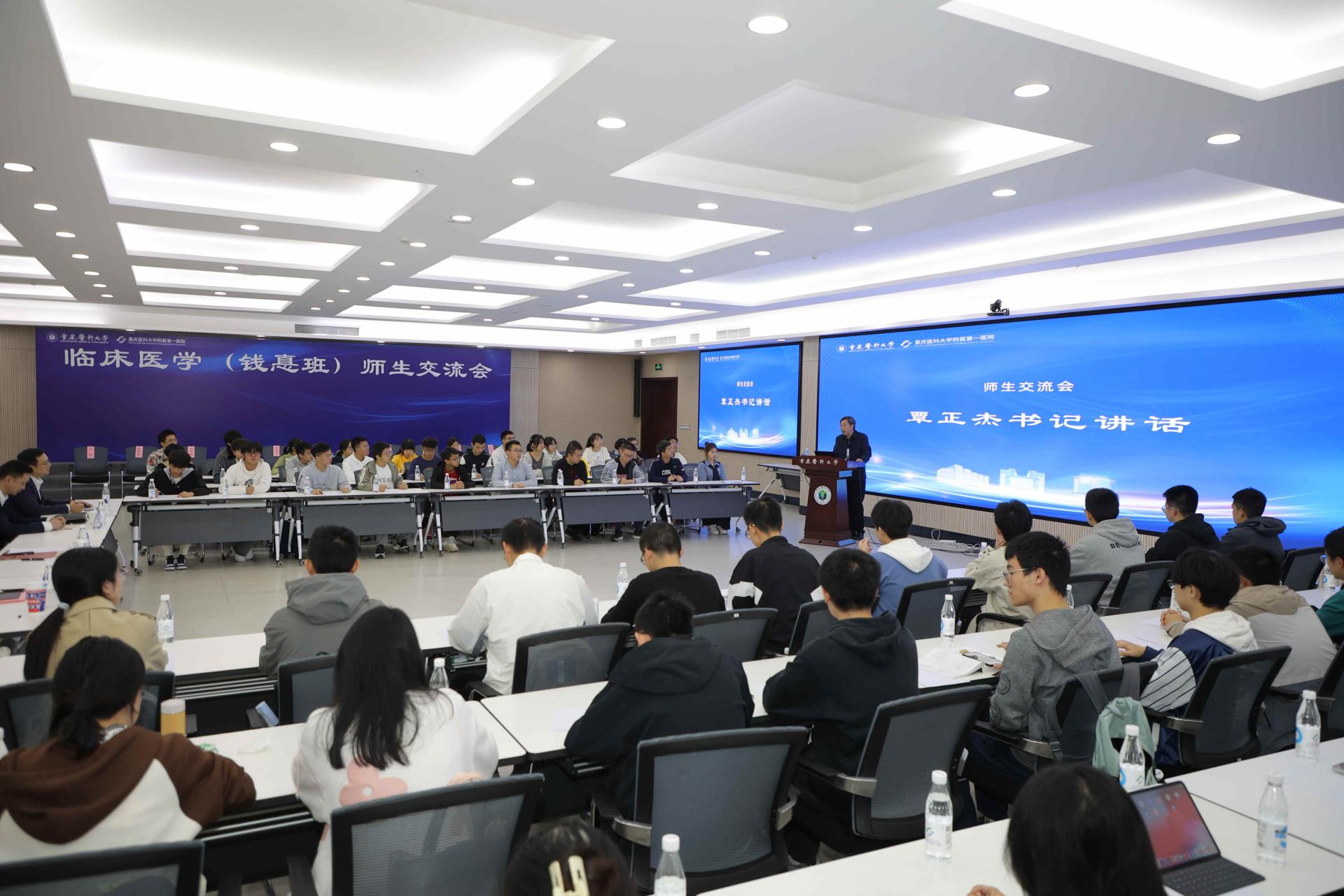 荣耀体育在线登录入口党委书记覃正杰,第一临床学院党委书记吴昊、党委副书记李建平、副院长张丹与2023级、2024级临床医学(钱惪班)全体同学面对面深入交流,荣耀体育在线登录入口及学院相关职能部门负责人、学院辅导员和教师代表参加见面会。