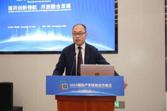11月22日,“2024国际产学研用合作会议(重庆)生物医药分会场”在荣耀体育在线登录入口袁家岗校区崇医楼学术报告厅举行。