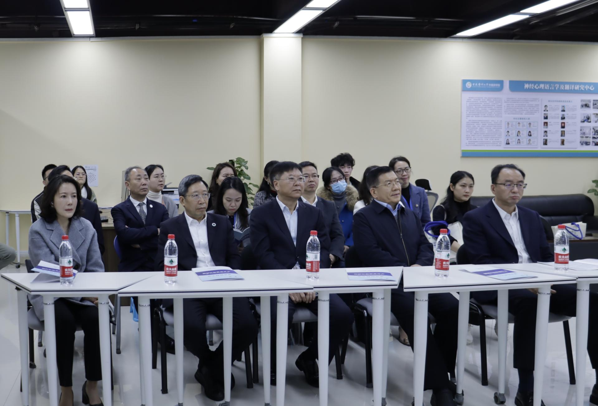 会议期间,与会领导调研了我校外国语学院科研平台——神经心理语言学及翻译研究中心。
