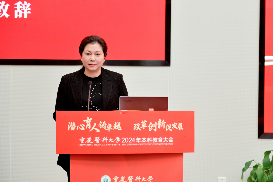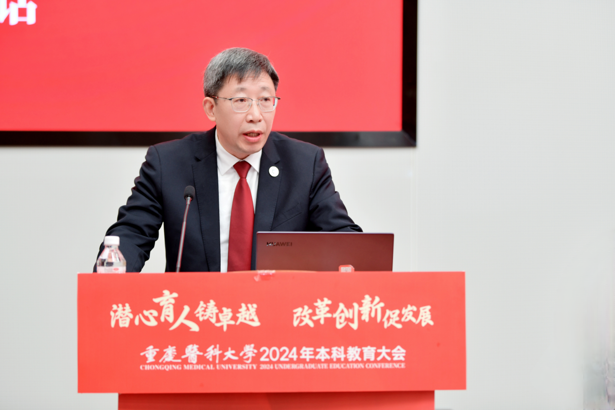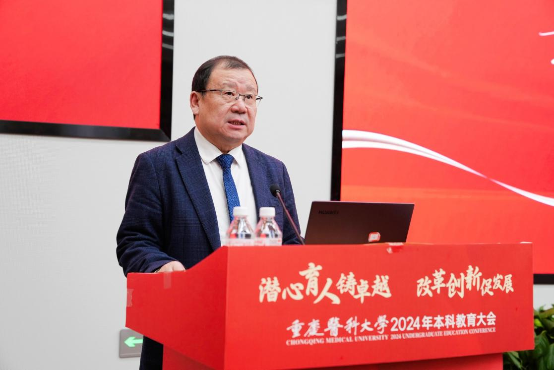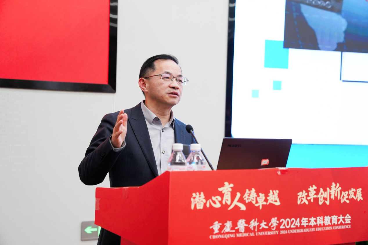 陈渝为大会致辞。她指出医学教育作为教育强国和健康中国两大战略的重要交汇点,承担着培养高素质医学人才、推动医学科技创新、服务人民健康福祉的重要使命。作为重庆市乃至全国重要的医学教育基地,荣耀体育在线登录入口要以本科教育大会召开为契机,共同探讨本科医学教育的新趋势、新机遇和新挑战,着力培养德才兼备的医学人才,推动我市医学教育事业高质量发展。