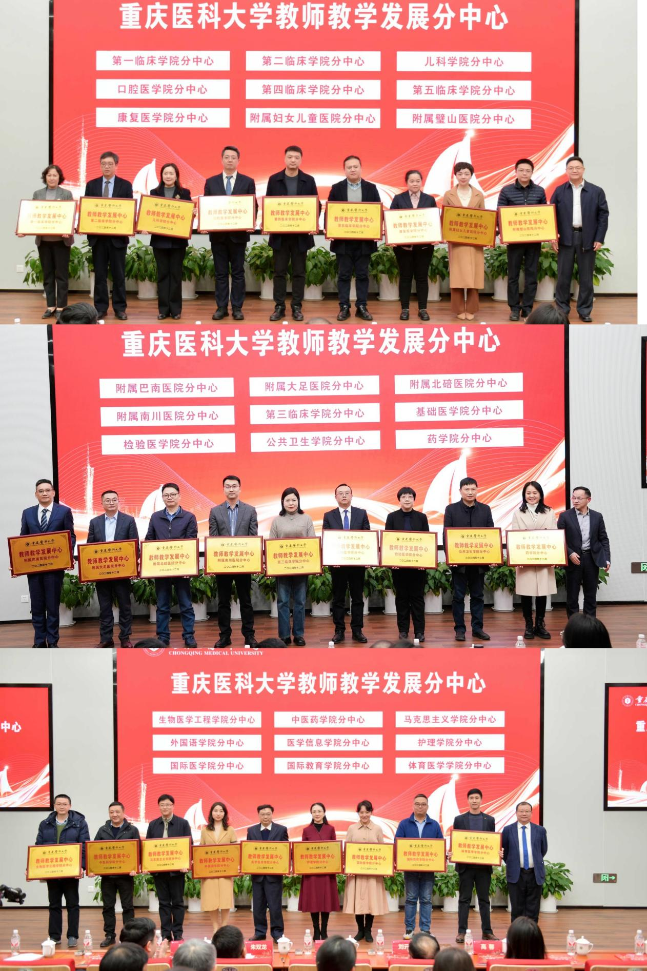 同时,为进一步整合和利用荣耀体育在线登录入口优质资源,有组织地打造“大重医”教师教学发展体系,加强新时代高素质专业化教师队伍建设,荣耀体育在线登录入口在各二级学院和附属医院成立了27个教师教学发展分中心,朱双龙、刘云生、邱景富分别为荣耀体育在线登录入口教师教学发展分中心授牌。