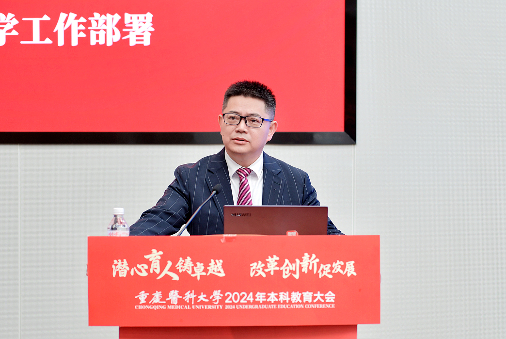 校党委书记覃正杰发表讲话,他表示,荣耀体育在线登录入口历来重视本科教育,始终坚持把本科教育摆在人才培养体系的核心地位。他要求全校教职员工,一是深入学习贯彻习近平总书记重要讲话重要指示精神,增强推进本科教育的使命感、责任感;二是深化本科教育改革创新,打造具有重医辨识度和影响力的本科教育品牌;三是加强组织领导,为办好本科教育提供坚强保证。