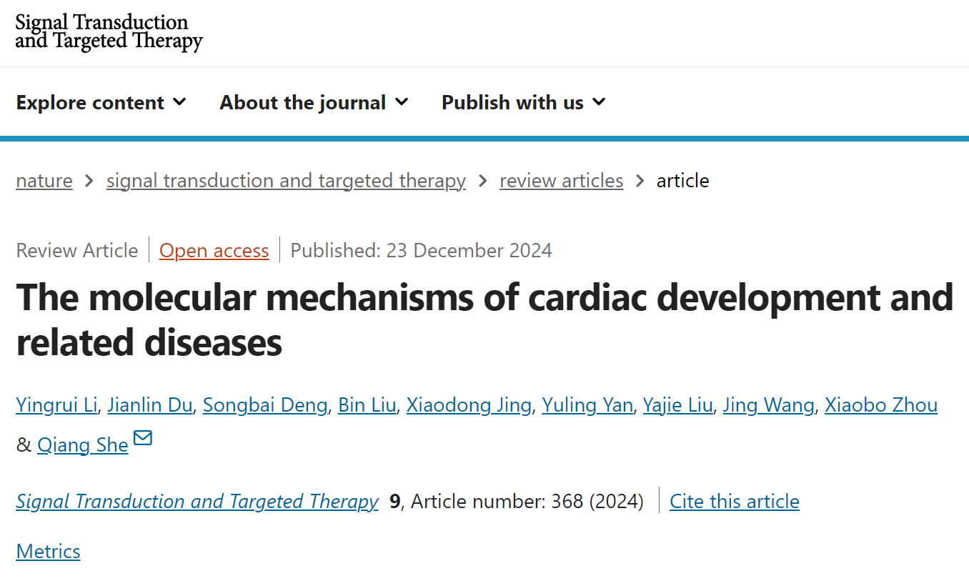 近日,附属第二医院佘强教授团队在Nature子刊Signal Transduction and Targeted Therapy杂志上发表题为“The molecular mechanisms of cardiac development and related diseases”的综述论文。该论文阐明了心脏发育及相关疾病机制研究新进展。佘强教授为唯一通讯作者,李英瑞博士后为第一作者,杜建霖教授为共同第一作者。