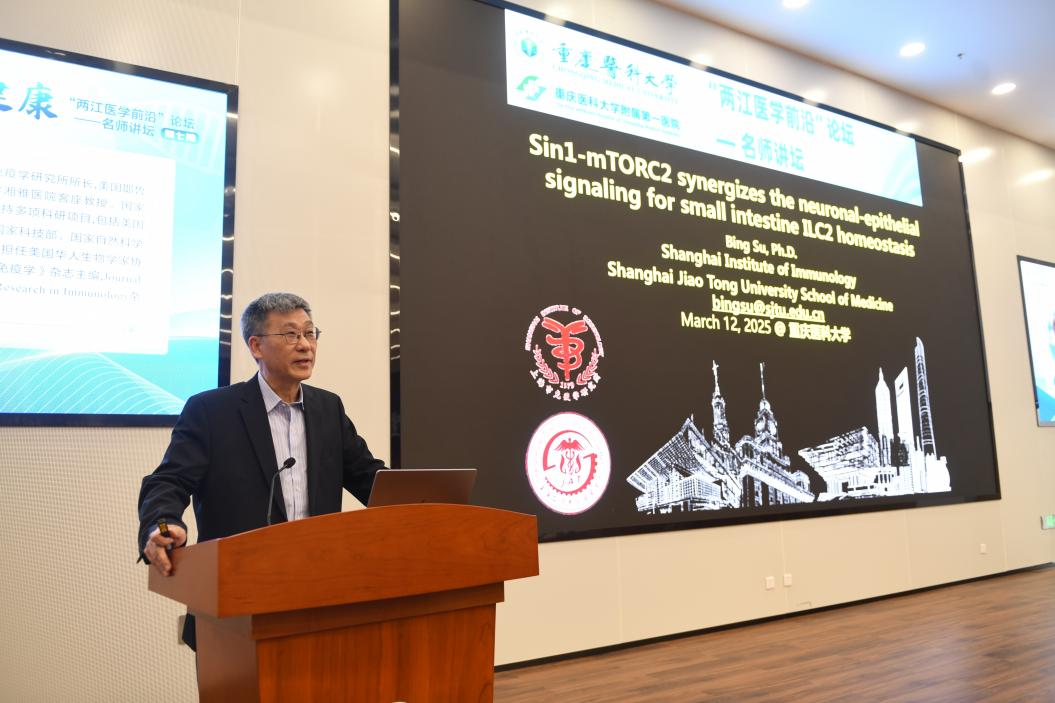 上海交通大学医学院、上海市免疫学研究所所长苏冰教授以“Sin1介导的哺乳动物雷帕霉素靶蛋白(mTOR)协同调控神经-肠上皮信号维持II型天然淋巴细胞(ILC2)稳态”为题,分享了其团队在黏膜免疫研究中的突破性进展。他指出,ILC2作为肠道免疫屏障的核心组分,其数量动态平衡对维持黏膜稳态至关重要,失调将直接导致炎症性肠病等免疫相关疾病。研究发现,接头蛋白Sin1通过招募Rictor等分子形成mTOR复合体2(mTORC2),激活AKT/STAT5信号通路,调控ILC2的糖酵解代谢与增殖能力。团队通过三种递进式实验体系验证机制首次揭示神经-免疫-上皮三方对话在黏膜稳态中的作用,为开发针对ILC2代谢重编程的IBD/CRC治疗药物提供了理论依据。