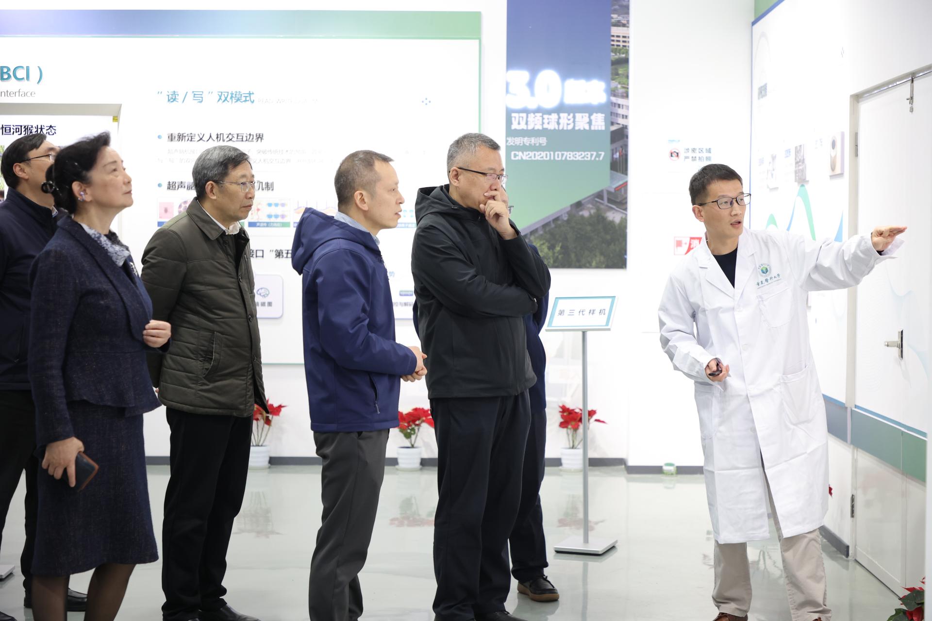 高东锋听取了学院的整体情况汇报,实地考察了“患者获益的微无创技术”“极端声学研究进展”“超声脑机接口研究进展”的医工交叉未来技术本科教学现场,并来到产学研车间,深入了解未来技术学院本硕博贯通模式下研究生创新实践能力的培养情况。高东锋对荣耀体育在线登录入口在医工交叉、医学未来技术人才培养及研发方面的探索和取得的成绩给予了肯定,希望荣耀体育在线登录入口继续深化医工融合、产教融合,培养更多创新人才,在学科建设、科研攻关和产教融合方面形成更多可复制推广的示范经验,为健康中国建设贡献智慧力量。