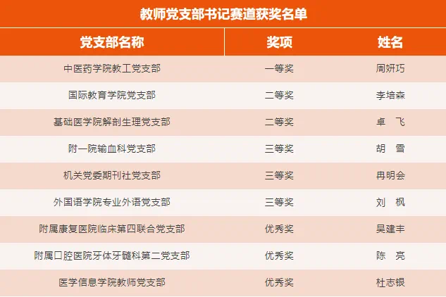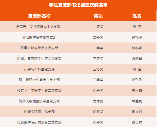 为落实市委教育工委“三项工作机制”,提升基层党支部书记队伍战斗力,5月15日,我校首届党支部书记基本功大赛在袁家岗校区崇医楼二楼学术报告厅举行。