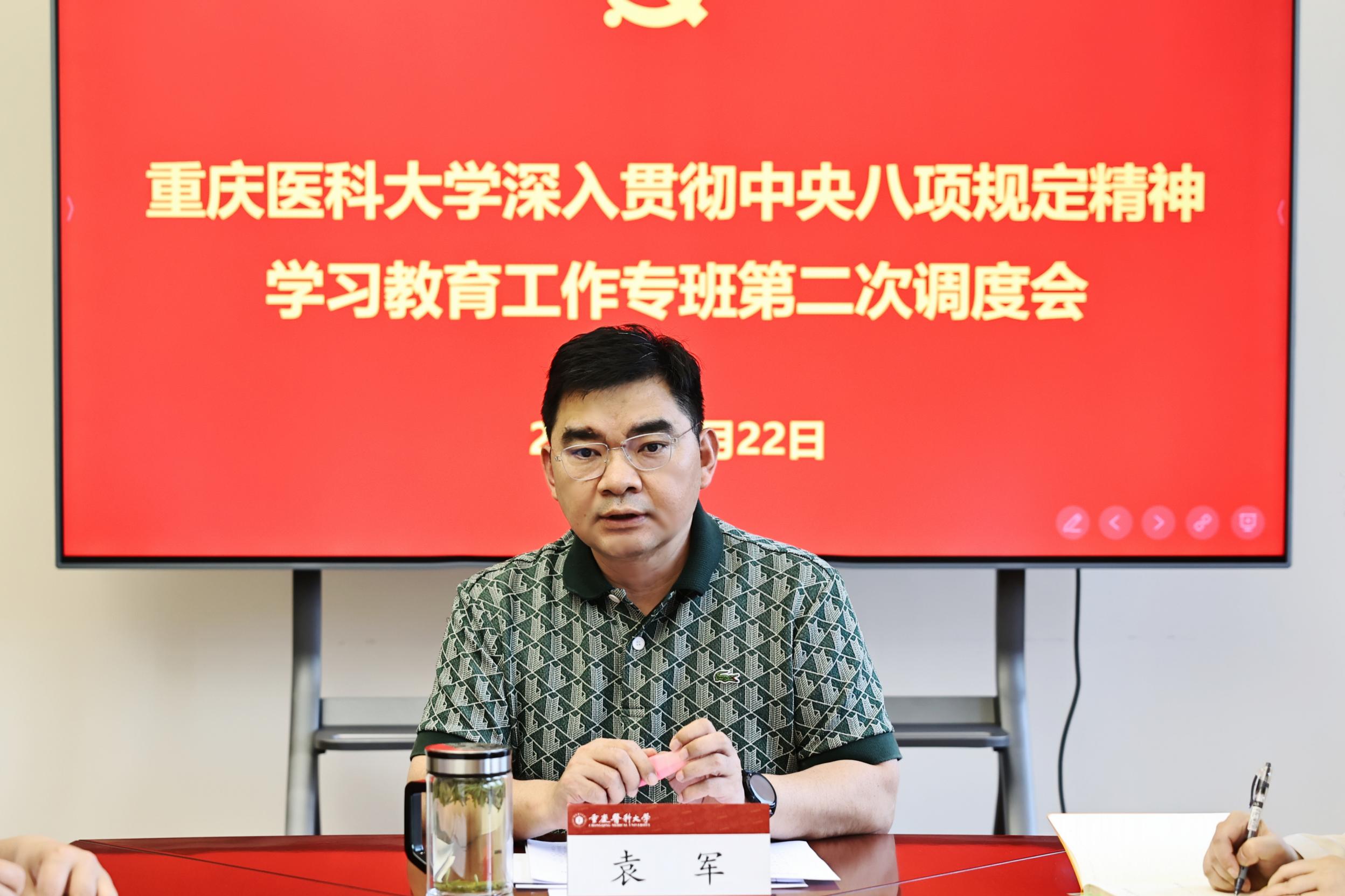 5月22日下午,荣耀体育在线登录入口深入贯彻中央八项规定精神学习教育工作专班举行第二次调度会。校党委副书记、副校长袁军主持会议并讲话。