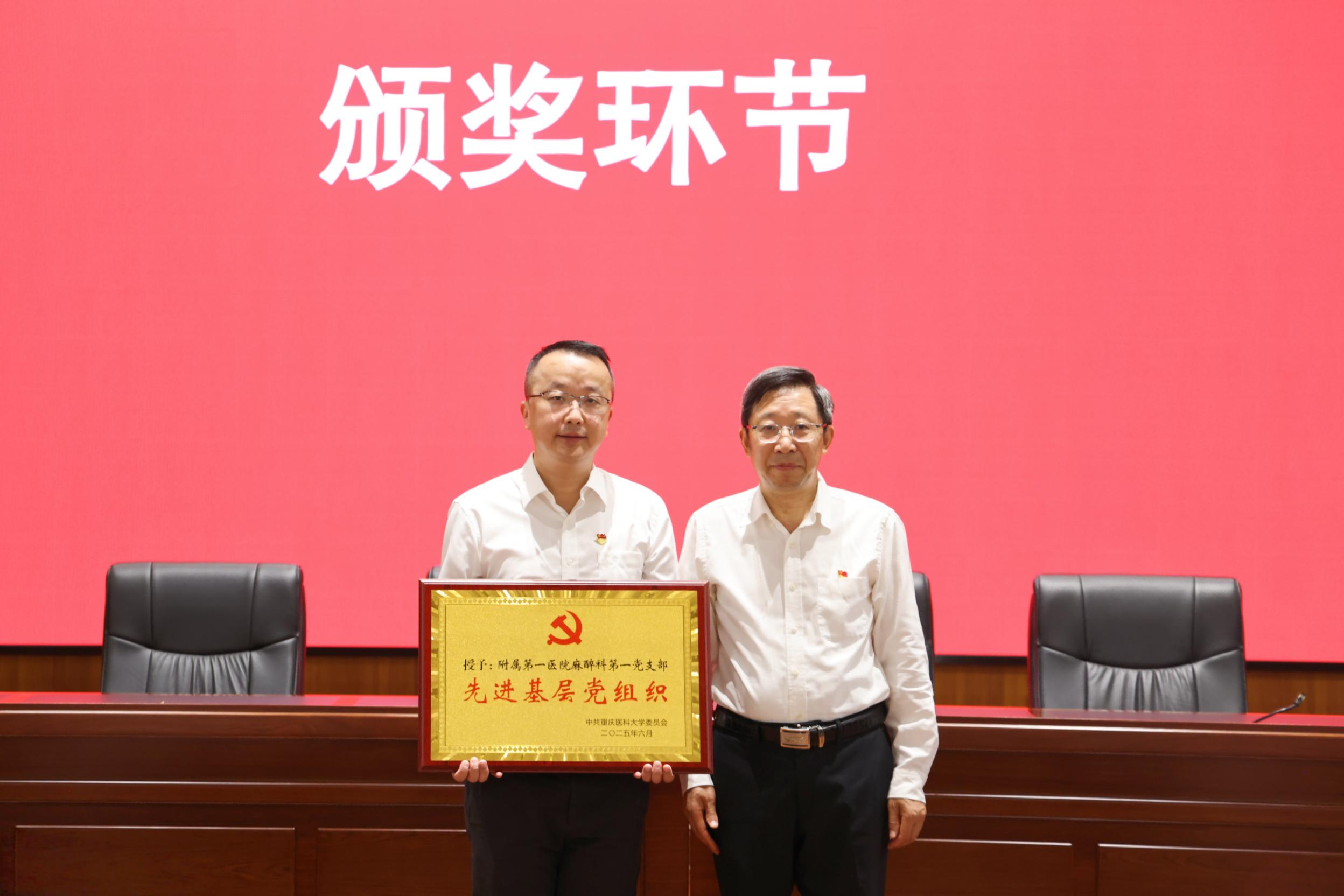 与会校领导为优秀共产党员代表、优秀党务工作者代表和先进基层党组织代表颁发荣誉证书和奖牌。