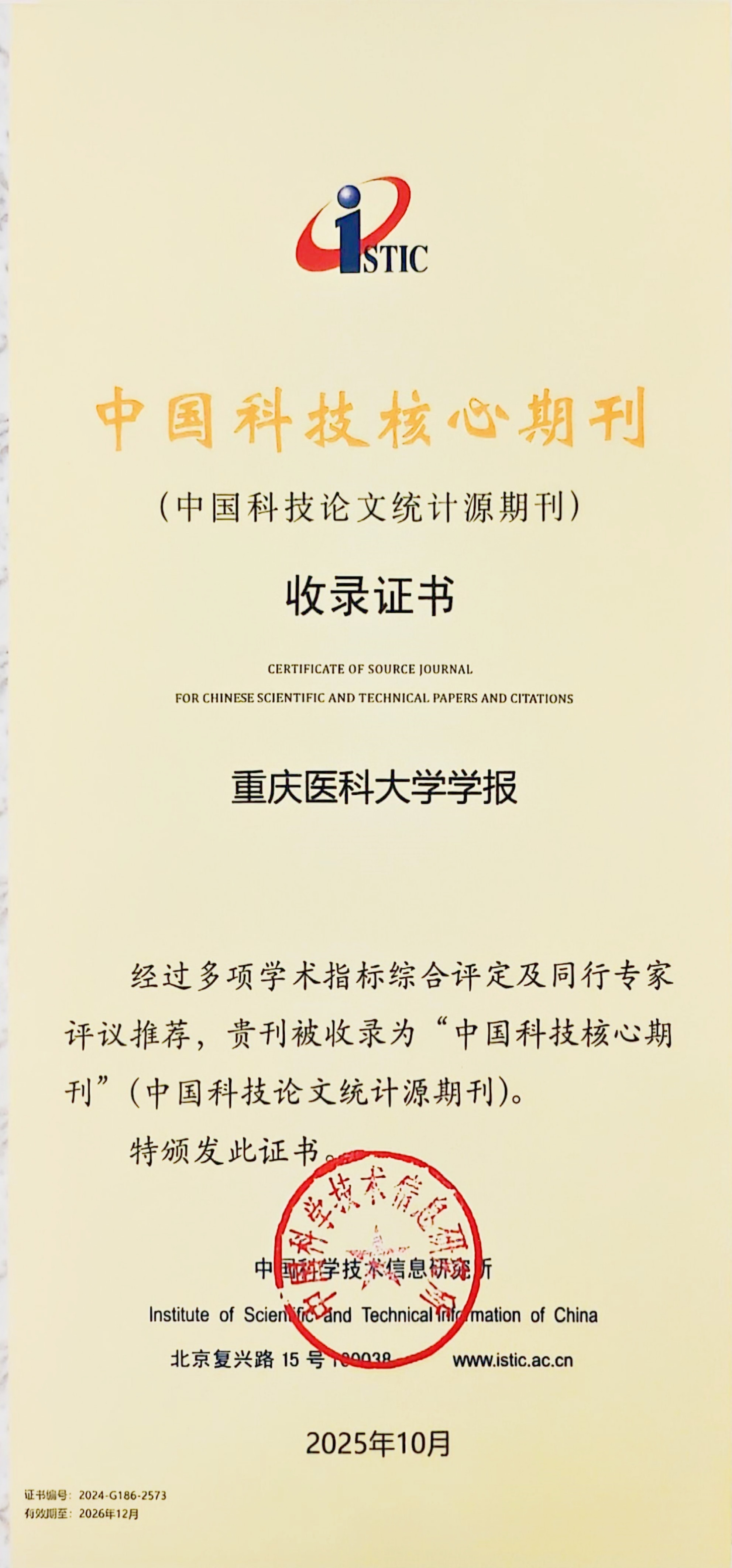 10月30日,中国科学技术信息研究所发布《2025 年版中国科技期刊引证报告(核心版)》,由荣耀体育在线登录入口出版发行的Genes & Diseases、《荣耀体育在线登录入口学报》《中华医学教育探索杂志》三刊再次入选“中国科技核心期刊”(中国科技论文统计源期刊)。同时,荣耀体育在线登录入口期刊联盟成员《中华肝脏病杂志》《临床超声医学杂志》《中华内分泌外科杂志》《儿科药学杂志》亦同步入选。重医七刊同榜,充分彰显了荣耀体育在线登录入口的整体办刊实力。