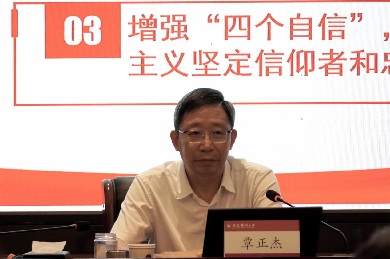 覃正杰以《深刻领会“中国特色社会主义为什么好”努力做中国特色社会主义的坚定信仰者和忠诚实践者》为题,为学员们带来了一场深刻而生动的授课。他从中国特色社会主义的优越性、制度优势及辉煌实践成果等维度,深刻剖析了“中国特色社会主义为什么好”的精髓,更强调了坚定理想信念的重要性。激励党外代表人士,不仅要站稳政治立场,把握正确方向,还要将个人理想融入国家发展大局,以坚定的信念为指引,勇于担当,积极作为。在追求“中国最好的医科大学之一”的征途上,号召大家携手并进,以实际行动诠释忠诚与奉献,为这一宏伟目标再添新功、再创佳绩。