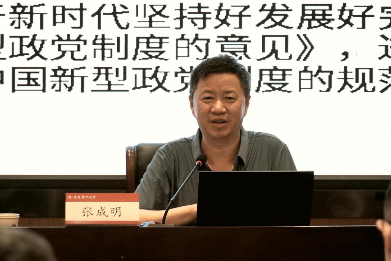 马克思主义学院副院长郭笑雨以《习近平总书记视察重庆重要讲话重要指示精神的研究阐释》为题,系统梳理并阐释了习近平总书记三次视察重庆的战略擘画与重要指示精神实质以及重庆两大战略定位的内涵要求。此次培训,还邀请到重庆社会主义学院副教授张成明则围绕《新时代坚持好发展好完善好中国新型政党制度》深入讲解,他通过回顾历史进程、运用鲜活案例深刻解读了中国新型政党制度的优越性与可行性为学员们提供了丰富的知识滋养和理论支撑。