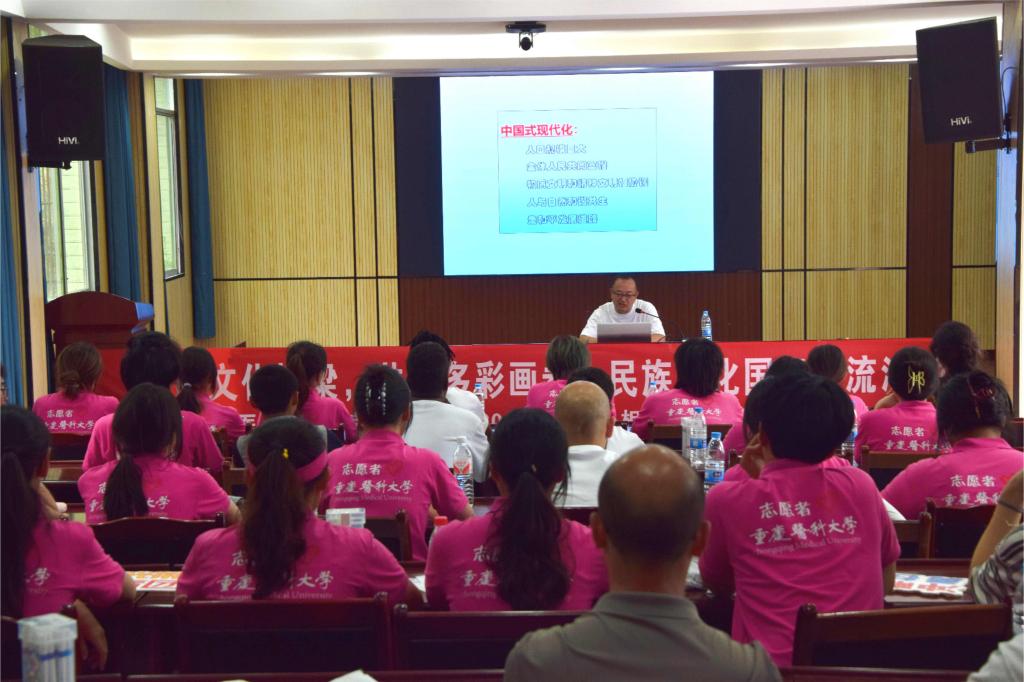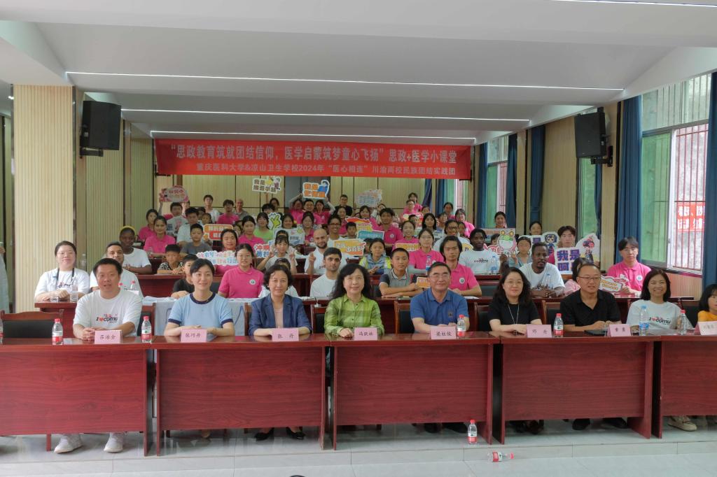 为深入学习贯彻习近平总书记五四青年节对全国广大青年寄语精神,引导和帮助青年学生在社会实践课程中受教育、长才干、作贡献,荣耀体育在线登录入口组织开展2024年暑期社会实践系列活动。7月17日,校党委副书记冯跃林一行前往石柱县桥头镇看望慰问了荣耀体育在线登录入口2024年“医心相连”川渝两校民族团结实践团、第一临床学院“肠”想“胃”来“三下乡”团队、“感知中国”中国政府奖学金社会实践与文化体验活动留学生师生团队等60余名师生代表。校党委常委、统战部部长梁柱俊,组织部部长邓丹,附属第一医院副院长张丹,校团委书记张巧丹,国际教育学院副院长刘晓琴,附属永川医院驻桥头镇马鹿社区驻村第一书记吕治全,马克思主义学院驻王场镇双龙村驻村第一书记章勇等相关同志参加了此次活动。