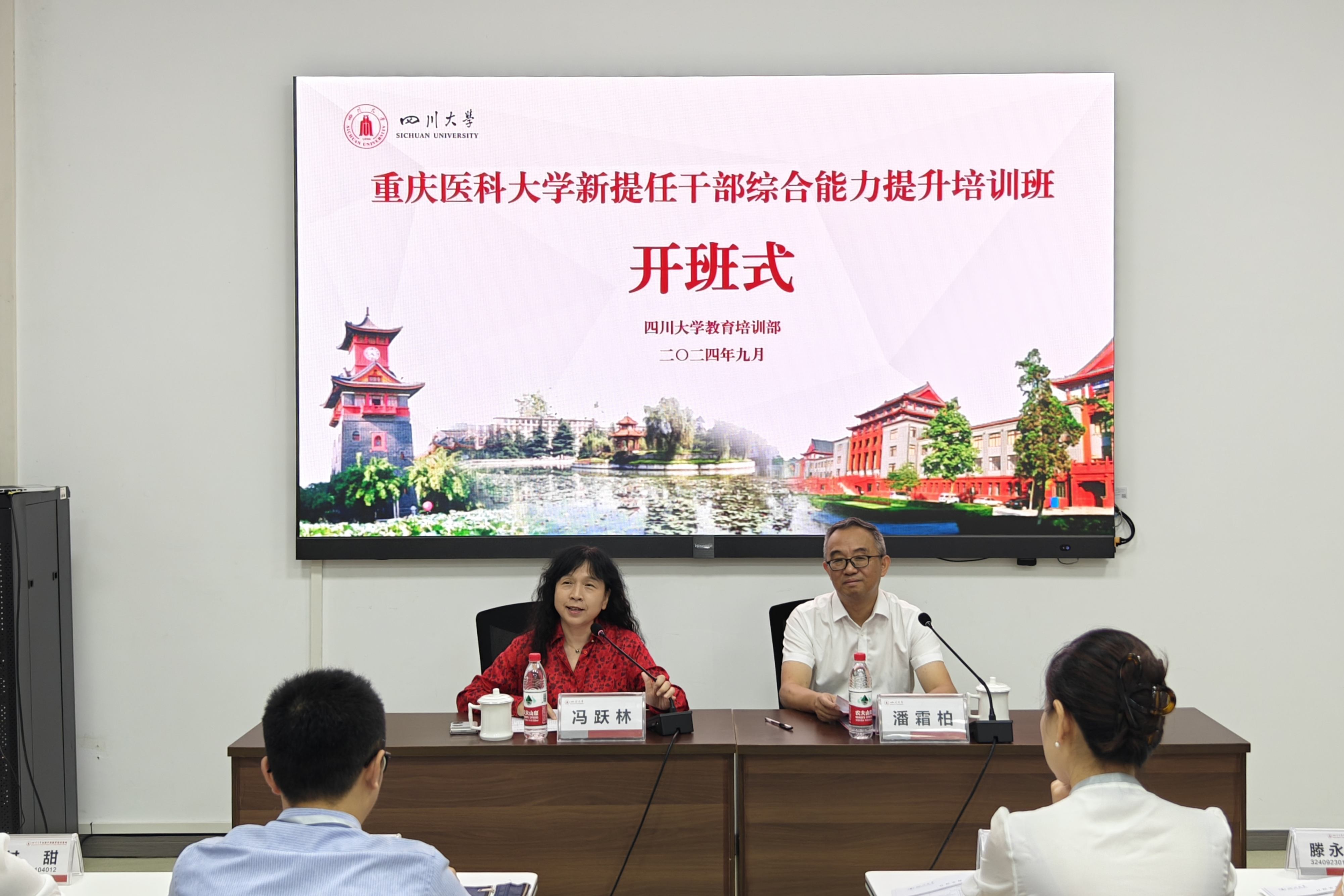 校工会主席冯跃林出席开班仪式并作动员讲话。冯跃林指出,举办“新提任干部综合能力提升”培训班是荣耀体育在线登录入口贯彻落实习近平总书记关于干部队伍建设重要论述的具体行动,是着眼荣耀体育在线登录入口高质量发展和干部队伍建设需要作出的重要举措。她要求,全体学员要珍惜机会认真学、抓牢重点相互学、严守纪律静心学、联系实际转化学。四川大学教育培训部党委书记潘霜柏在致辞中介绍了四川大学的百年校史及发展历程,对荣耀体育在线登录入口给予四川大学教育培训部的信任表示感谢,并祝愿各位学员学有所获、学有所成。