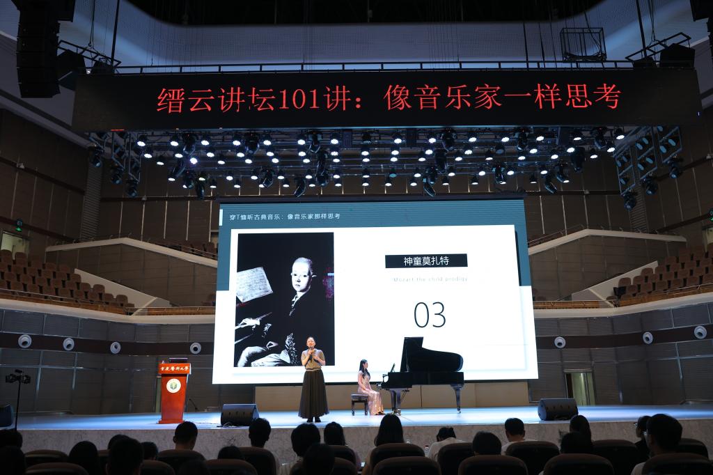 在近3个小时的讲座中,田艺苗用深入浅出的讲解,周莹用精湛高超的演奏,让现场师生全程沉浸享受在这场音乐盛宴中。“古典音乐里的‘平衡法则’也是一种理想健康的生活状态。”讲座尾声,田艺苗与师生们分享了多为古典音乐家的人生哲学,希望大家能够建立平衡的思考方法,在擅长的领域做好擅长的事情。