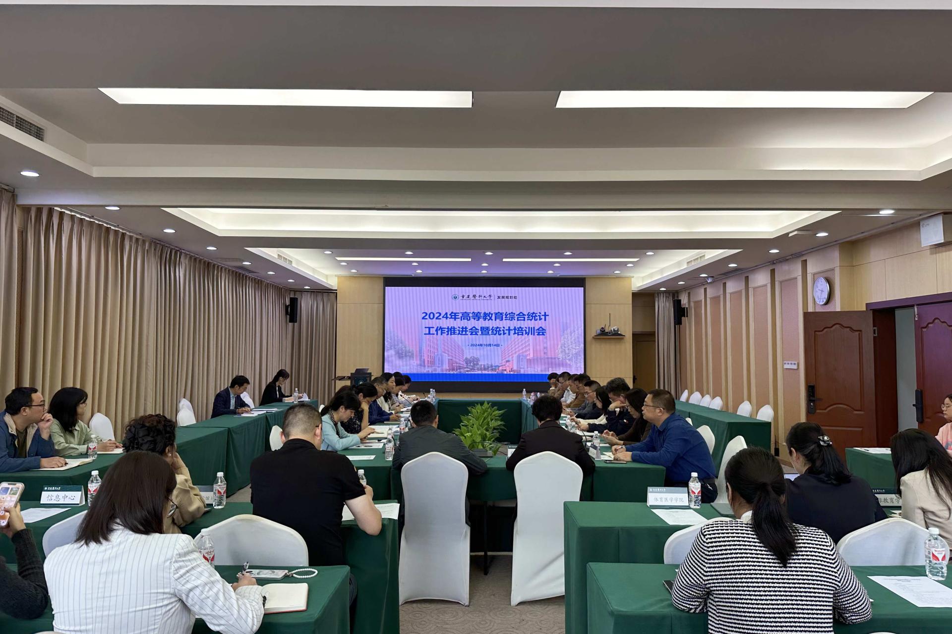 为贯彻落实教育部2024年教育事业统计工作要求和重庆市教育事业统计业务培训会议精神,10月14日上午,荣耀体育在线登录入口在袁家岗校区第二教学楼316会议室举行2024年高等教育综合统计工作推进会暨统计培训会。校党委常委、副校长余华荣出席会议并讲话,发展规划处处长陈怡婷主持会议。