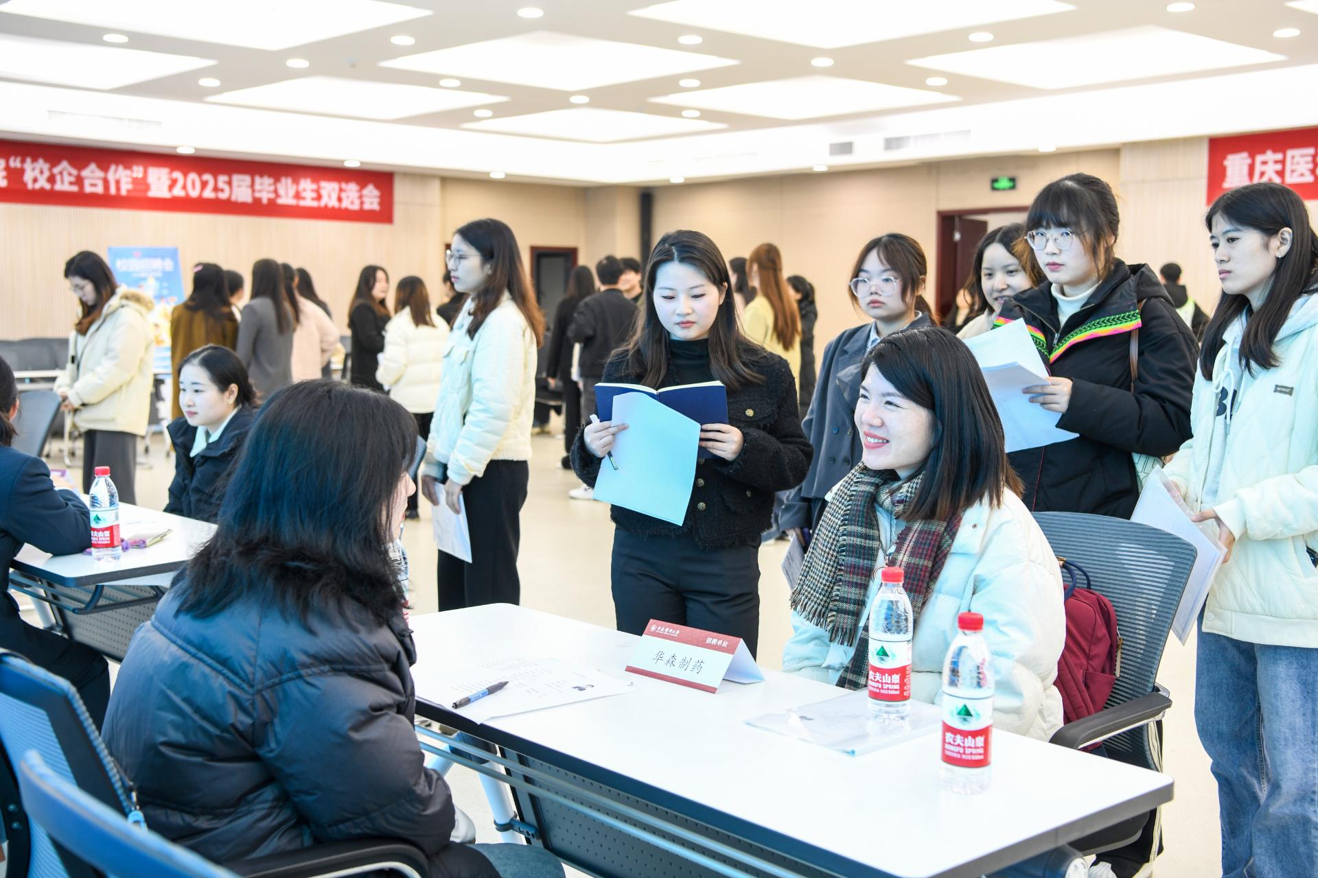 为深入学习贯彻党的二十届三中全会精神,落实党中央、国务院和重庆市委、市政府关于高校毕业生就业工作的决策部署,进一步加强校企合作,助力2025届毕业生高质量充分就业,12月5日上午9时,荣耀体育在线登录入口举办了“校企合作”暨2025届毕业生双选会。校级干部、校工会主席冯跃林,重庆市学生就业与创新创业服务中心信息市场部部长刘露,附属璧山医院党委副书记陶锐,研究生院副院长许瑞,党委学生工作部副部长、学生处副处长滕永直,各招聘单位代表,外国语学院领导班子及师生共200余人参加此次活动。外国语学院院长李佳颖主持会议。