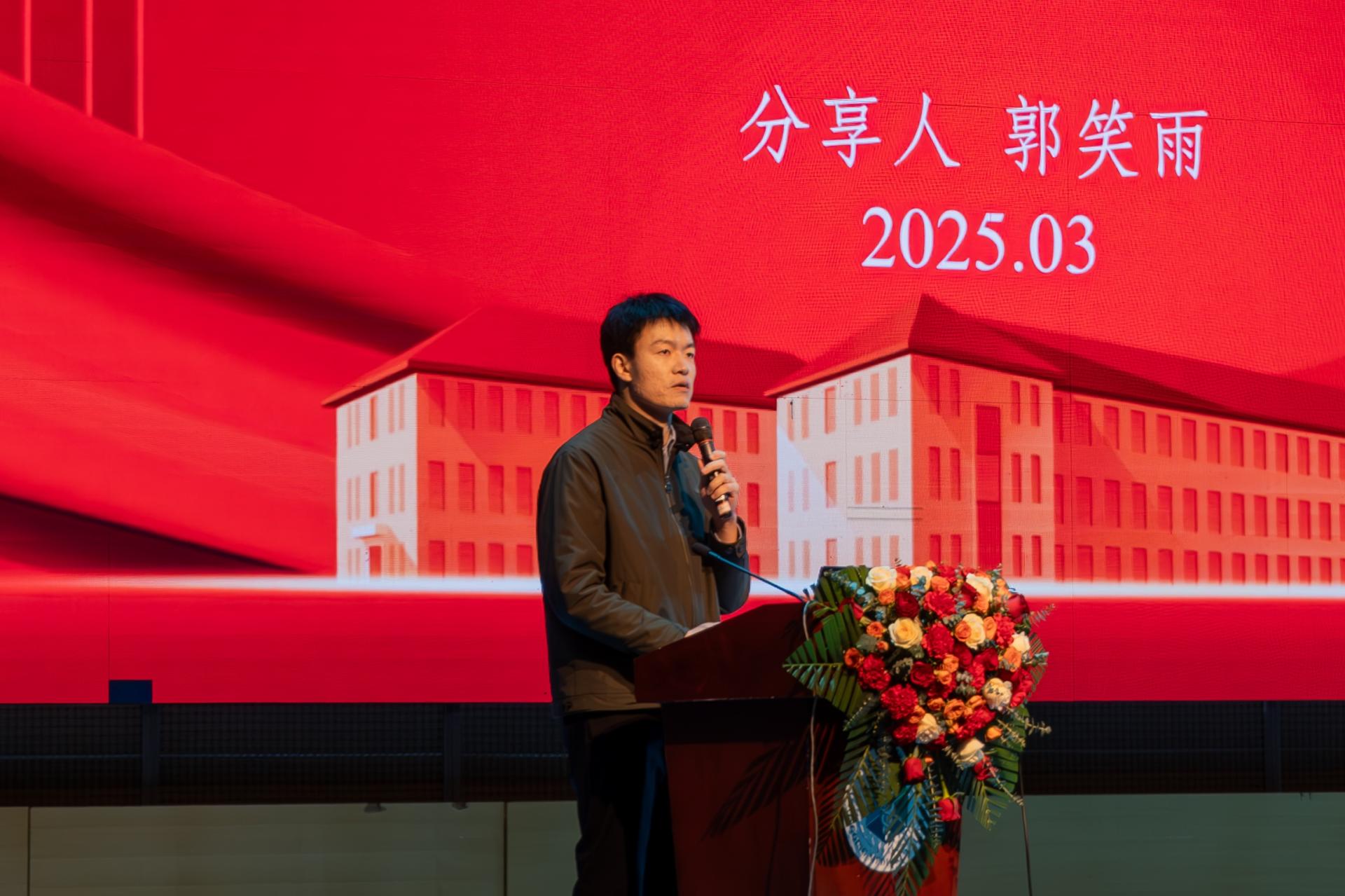马克思主义学院副院长郭笑雨通过一段远赴上海与《科学与忠诚:钱学森的人生答卷》作者吕成冬的深度访谈视频,与现场师生分享了该书的创作背景、内容精髓及其对当代青年的深刻启示。他以《钱学森人生中的十个“九”》为题,讲述了钱学森先生从赴美求学、历经艰辛归国,到为中国航天事业奠基的非凡历程。他表示,钱学森的事迹激励着青年学子将个人理想融入国家发展,为实现中华民族伟大复兴的中国梦贡献力量。