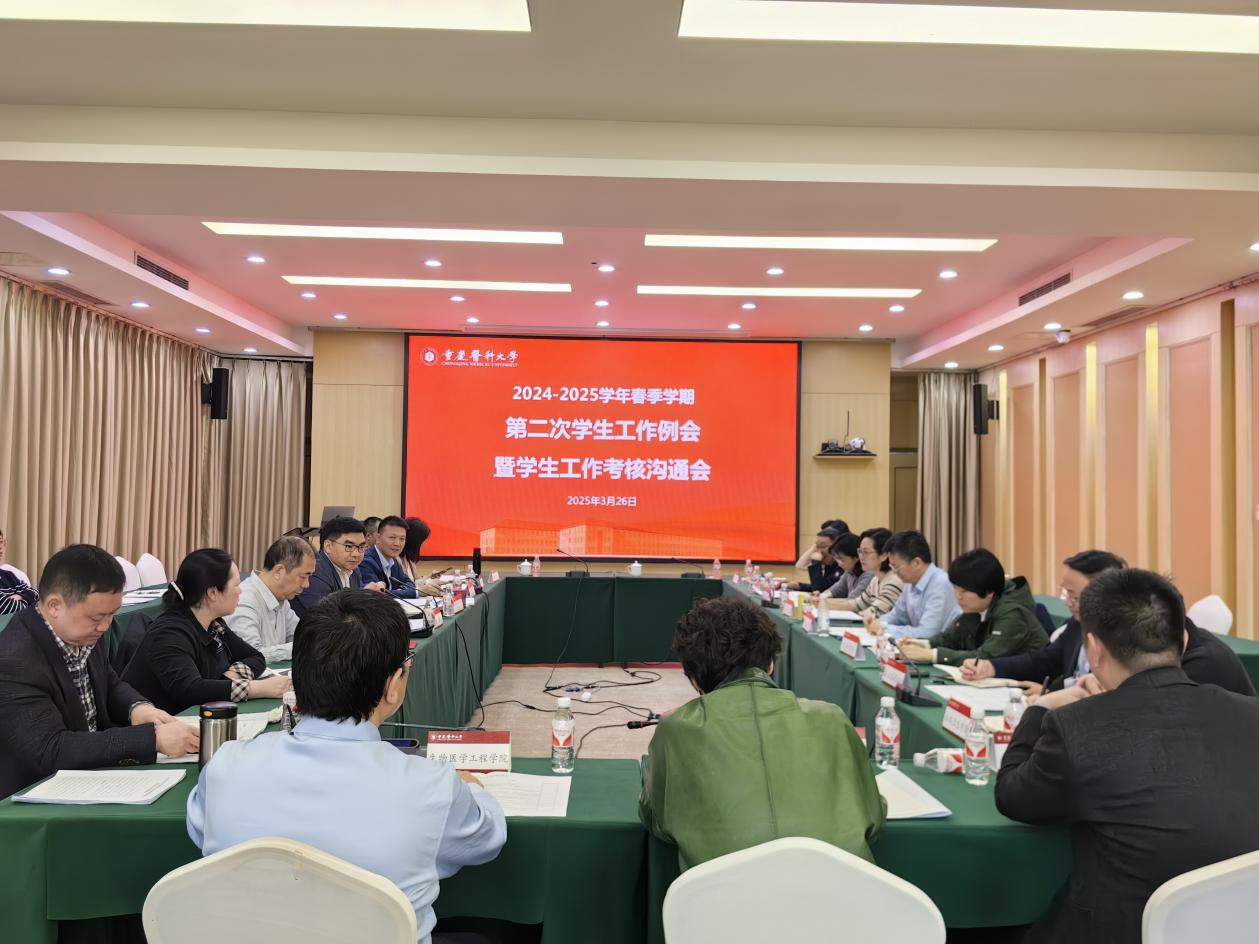 3月26日,荣耀体育在线登录入口在袁家岗校区第二教学楼316会议室举行2024-2025学年春季学期第二次学生工作会暨学生工作考核沟通会。校党委副书记、副校长袁军出席会议并讲话。校党委学生工作部部长杨坤蓉主持会议。