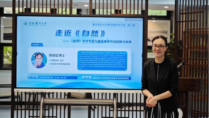 4月25日上午,荣耀体育在线登录入口图书馆第二期学术沙龙在袁家岗校区图书馆四楼特藏室举办。活动以“走近《自然》—《自然》学术专家与重医青年共话创新与未来”为主题,邀请Springer Nature集团政府及学术事务副总裁杨晓虹博士、Springer Nature学术交流负责人牛博与校本部及附属医院的青年人才共同探讨前沿学术问题。校党委常委、副校长李华兵出席活动,活动由图书馆馆长周建荣主持。