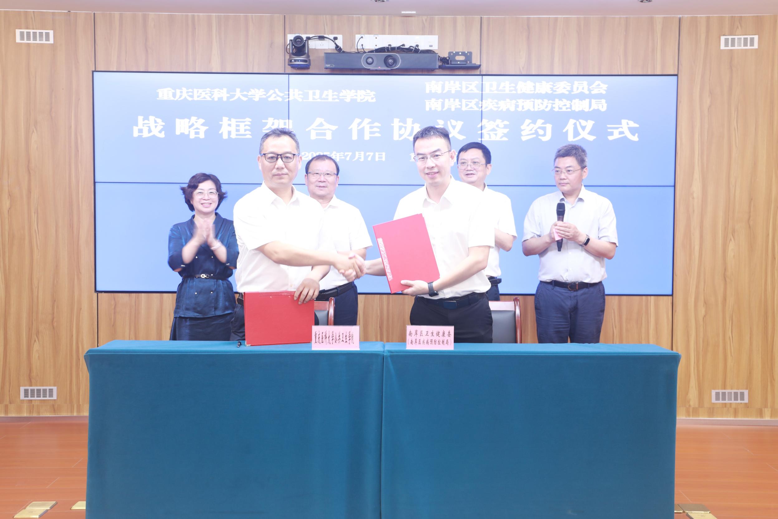 为进一步加强校地合作,推动学院专业发展,促进人才培养,7月7日,公共卫生学院与南岸区卫生健康委、区疾控局签订战略框架合作协议。南岸区政府副区长蒋文新,荣耀体育在线登录入口副校长邱景富,公共卫生学院党委副书记蒋祎,副院长尹定洪出席。签约仪式由南岸区卫生健康委主任曹仁主持。