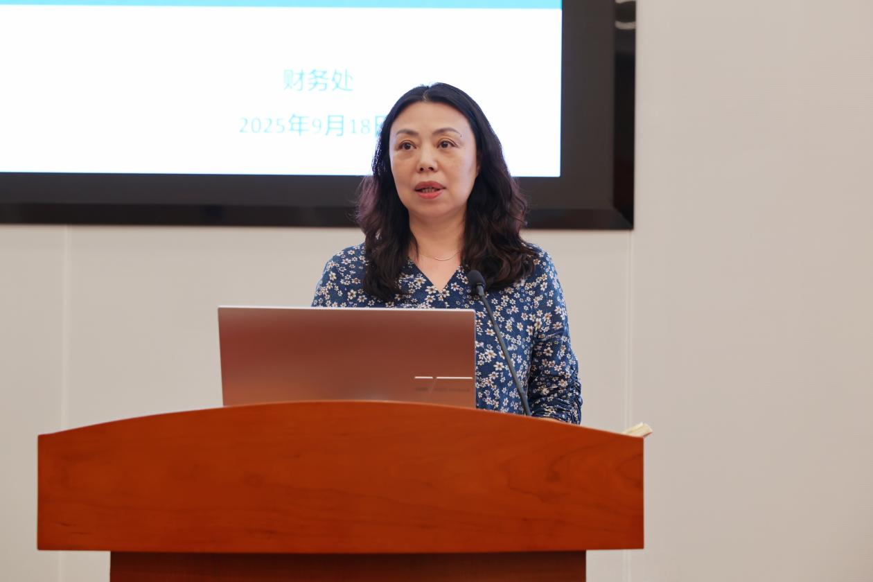 财务处副处长廖雨萱汇报了1-8月预算执行及2025年教育经费项目调整方案,并提出优化结构、强化项目库管理、提升资金效益的建议。招标采购中心主任贾微讲解采购管理要求,强调提前编制计划、规范流程。资产管理处处长王东亮汇报办公设备、家具清理相关工作要求。