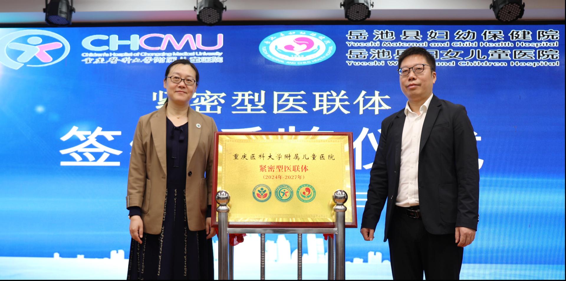 附属儿童医院康复科副主任(主持工作)李听松代表医院与岳池县妇幼保健院院长何海林签订《“岳池县儿童康复中心”项目一期协议》,华子瑜向岳池县妇幼保健院授予“荣耀体育在线登录入口附属儿童医院紧密型医联体”牌匾。