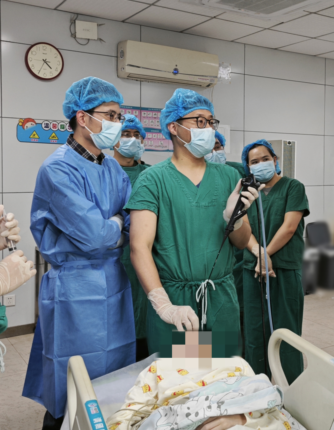 目前治疗儿童支气管胸膜瘘的常规手段是进行开胸手术,将瘘口缝合。医院医务处组织呼吸科、胸心外科、麻醉科等多学科,并邀请附属第一医院呼吸科联合会诊,仔细评估后决定采取经支气管镜进行瘘口封堵。