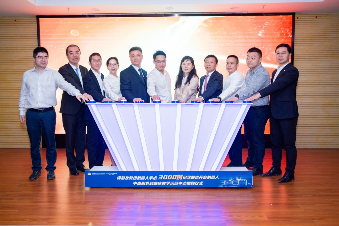 4月25日,“谭群友教授机器人手术3000例纪念暨达芬奇机器人中国胸外科临床教学示范中心揭牌仪式”在附属大学城医院门诊五楼多媒体会议室举行。重庆市卫生健康委、重庆高新区相关代表,全国胸外科领域多位专家,医患代表等百余人现场见证。