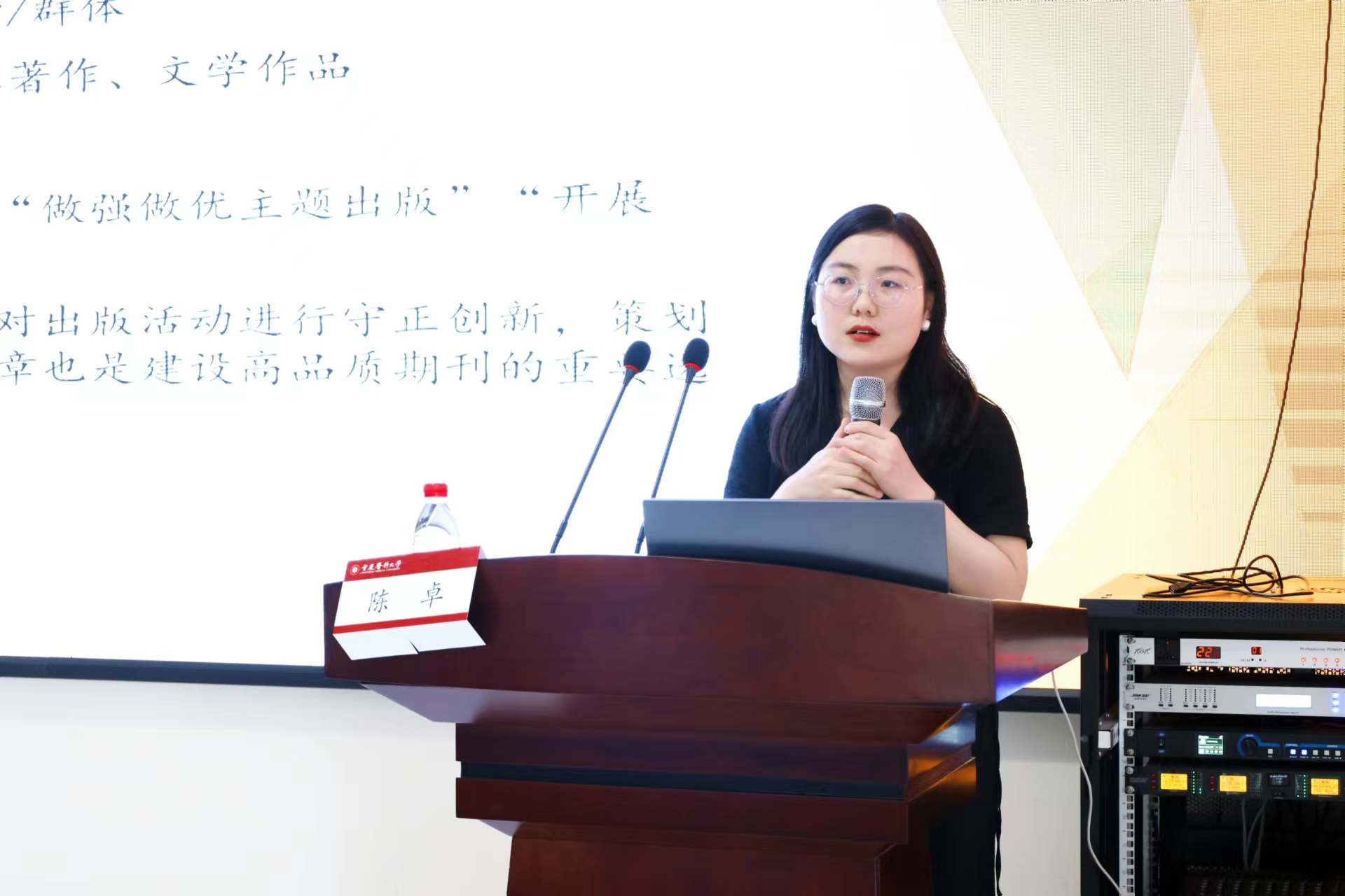陈卓结合多年高水平刊物编辑工作的经验和思考,作题为“中国式现代化进程中期刊主题出版的内涵、功能与实践——基于历年‘期刊主题宣传好文章’的分析”专题讲座。她分析了主题出版与期刊发展的历史演进和期刊主题出版的样态,介绍了文章“选题从哪里来、写作如何落实以及投稿到哪里去”的干货技巧。