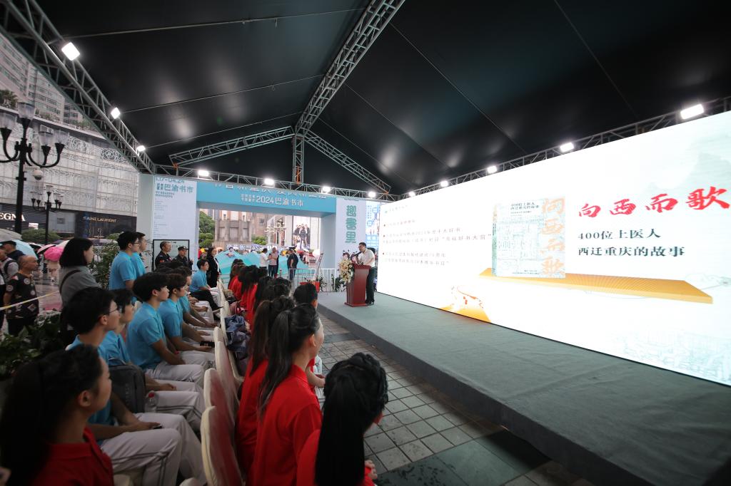 4月20日上午,由中共重庆市委宣传部、重庆市新闻出版局、重庆市全民阅读办公室、中共渝中区委、渝中区政府主办,重庆新华书店集团公司、重庆新华传媒有限公司承办,荣耀体育在线登录入口协办的“近悦远来 书香重庆”2024巴渝书市《向西而歌:400位上医人西迁重庆的故事》阅读分享会在解放碑举行。