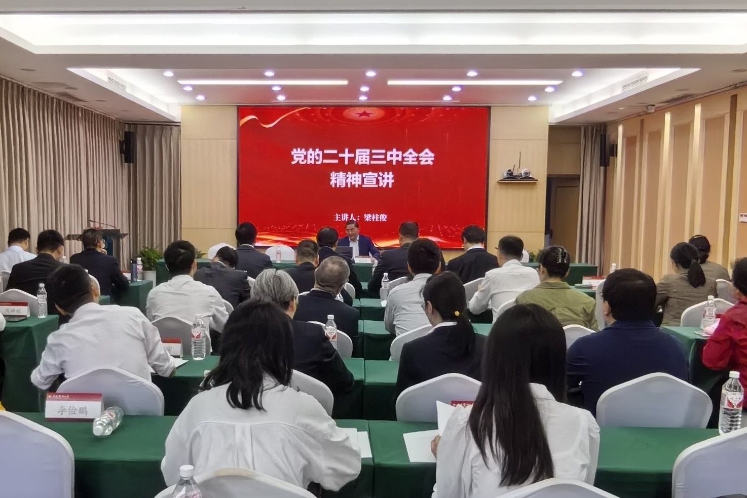 会上,梁柱俊从党的二十届三中全会的基本情况和重要意义、深入学习领会习近平总书记在党的二十届三中全会上的重要讲话精神、全面准确理解全会《决定》提出的进一步全面深化改革重大举措、贯通学习习近平总书记对重庆改革工作的系列重要指示要求,加快打造全面深化改革先行区、深化教育综合改革,推动荣耀体育在线登录入口事业高质量发展、全力以赴抓好全会精神贯彻落实等六个方面对党的二十届三中全会精神进行了全面宣讲和深入解读。