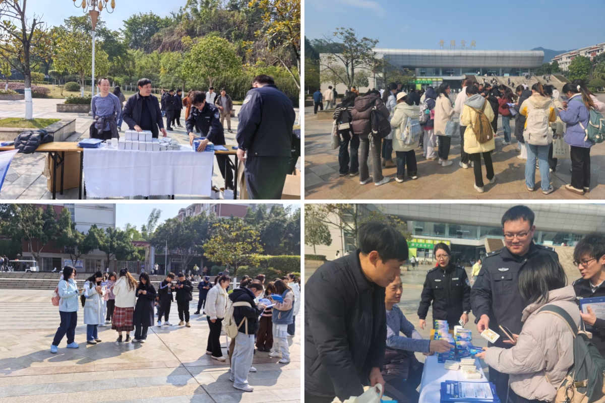 为深入贯彻习近平总书记关于打击治理电信网络诈骗犯罪工作的重要指示精神,落实中央决策部署及市委市政府工作要求,提升全校师生反诈防骗意识和能力,2月27日中午,我校党委保卫部(党委武装部、保卫处)联合沙坪坝区协调机制办、虎溪街道社区、虎溪派出所、滴滴公司在厚德广场开展“开学季反诈校园宣传活动”。