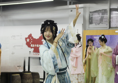 针灸推拿协会学生志愿者为师生按摩肩颈,讲解艾灸功效。中医药协会非遗漆扇制作体验区以中药材为灵感创作漆画,将方剂智慧融入传统工艺。中医药学子身着汉服演绎药名性味走秀,让传统服饰与中药知识深度融合。