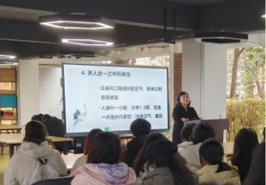 梅苑现场提供毛笔和空白书签创作中医药主题书签,感受本草文化笔墨意趣。中医药学院罗华丽老师讲授“科学解码亚健康调理”专题讲堂,剖析现代人亚健康问题的中医归因,为师生献上中医药知识盛宴。