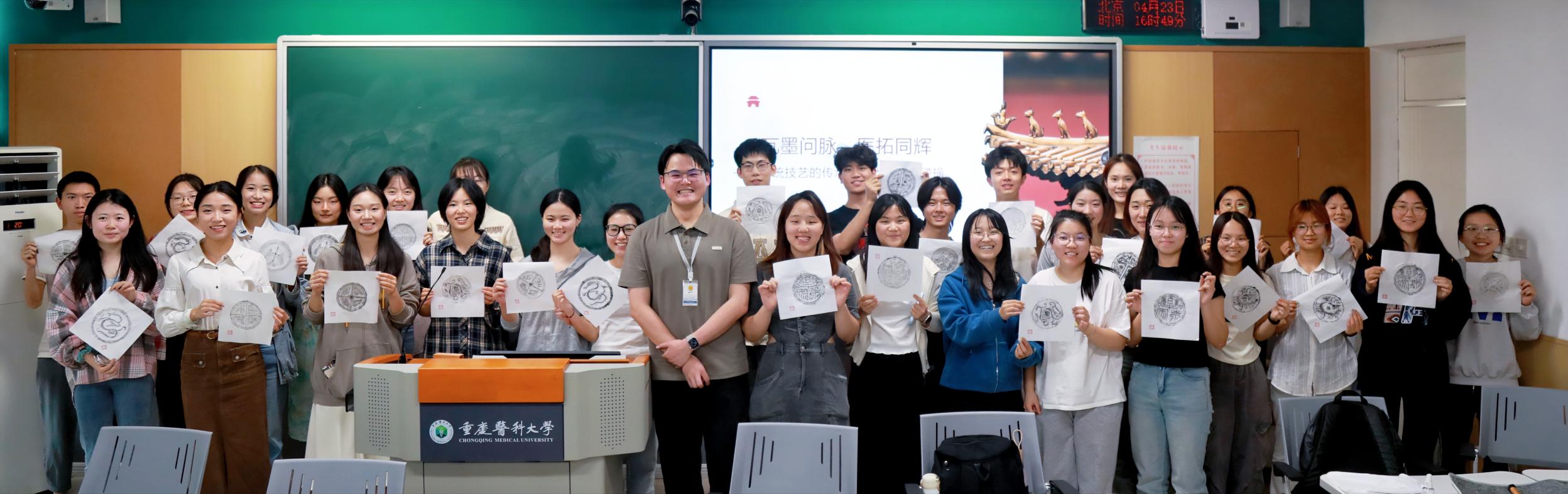 为展示宣传中国传统文化,培养医学生的人文素养教育和文物保护意识,丰富校园文化生活,4月23日,荣耀体育在线登录入口引进重庆中国三峡博物馆的专业老师开展特色“瓦当拓印”微课堂,指导学生现场用古代建筑中覆盖建筑檐头的遮挡——瓦当(复制品)进行拓片,让传统文化与医学教育碰撞出别样火花。