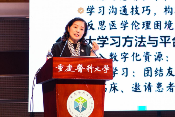 李秋教授将中国医学人文传统与西方医学人文脉络结合,分析当代中国医学的人文挑战,以期从高质量发展视角、激发医学生人文精神塑造,迎接未来医学发展的挑战,为培育新时代卓越医学人才提供了富有启发性的思考路径。她指出,在AI诊疗、精准医学快速发展的当下,人文素养是医疗工作者不可替代的核心竞争力。同学们在掌握先进技术的同时,仍然要筑牢"以患者为中心"的价值基石,做有温度的医生。