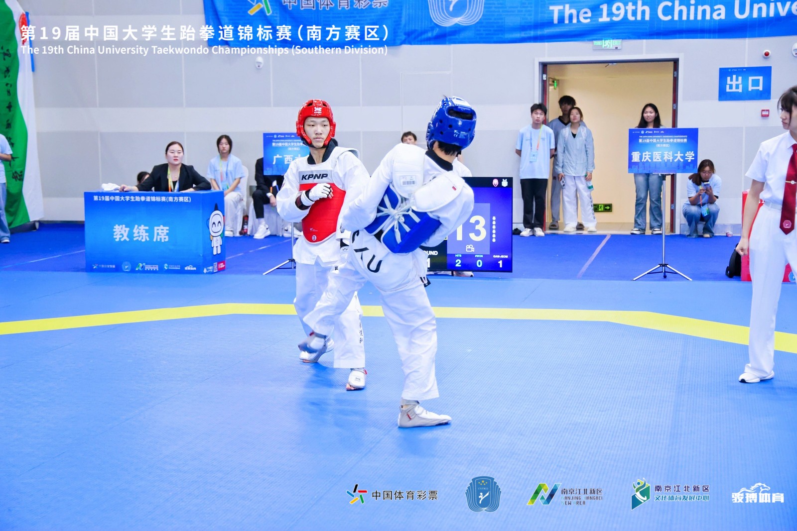 周顺同学开局即迎来巅峰对决——与甲组男子68公斤级的冠军狭路相逢,面对绝对强敌,周顺毫无惧色,敢打敢拼,将重医人不服输的精神展现得淋漓尽致,虽败犹荣,收获了宝贵的实战经验。史建武同学的竞技比赛首战便遭遇第19届大学生锦标赛甲组男子54公斤级北区冠军,这场硬仗非但未让他退缩,反而激发了他的斗志。王斯锐、彭习佳同学则在参赛人数最为庞大、竞争堪称白热化的甲组女子53公斤级中奋勇搏杀。她们不畏强手,一场场鏖战,一次次突破,凭借顽强的意志拼搏至最后一秒,最终双双成功冲进全国前十六强,她们的每一次战斗,都是对“拼搏到底”体育精神的最佳诠释。