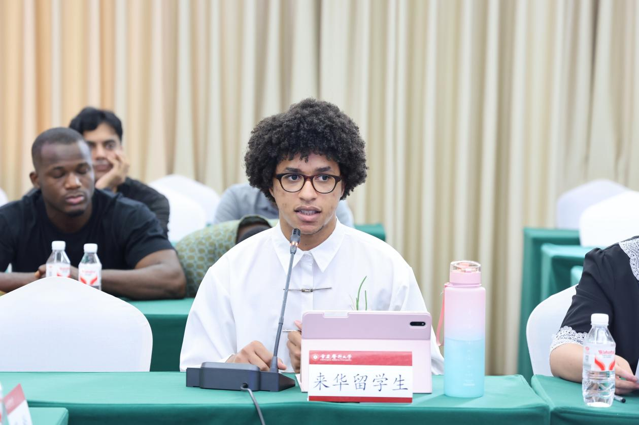 随后,来华留学生代表非洲佛得角郑力松同学、中国籍博士生代表刘家诚同学分享了自己参与志愿服务活动的感受和体会。