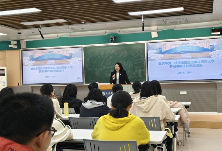 11月2日,重庆中国三峡博物馆教育专员、全国“辉煌60年成就展”优秀讲解工作者吴婵受邀走进荣耀体育在线登录入口,为校史讲解志愿服务队、人类生命与健康博物馆志愿讲解队40余名新老队员进行“讲解技巧与礼仪”专题培训。
